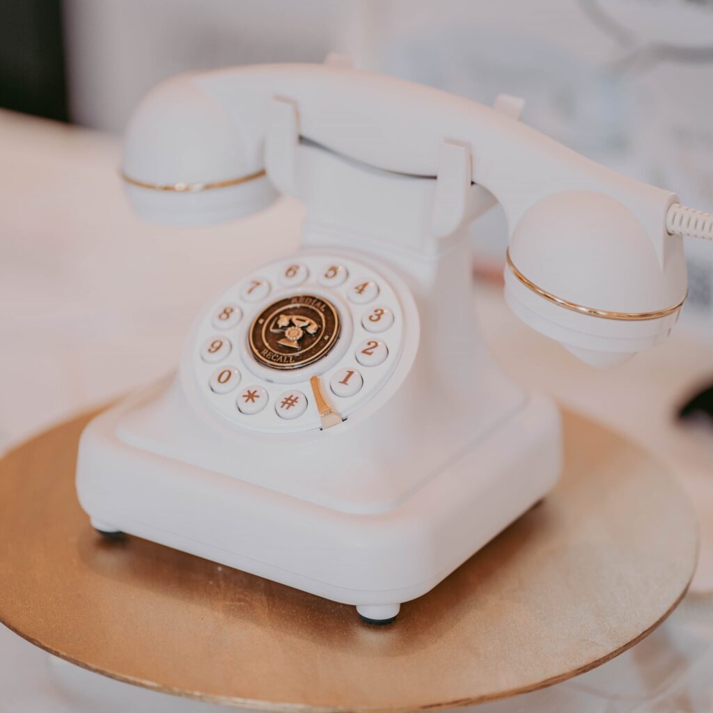 Miete dieses Vintage Telefon in Weiß als Audio-Gästebuch für deine Hochzeitsfeier