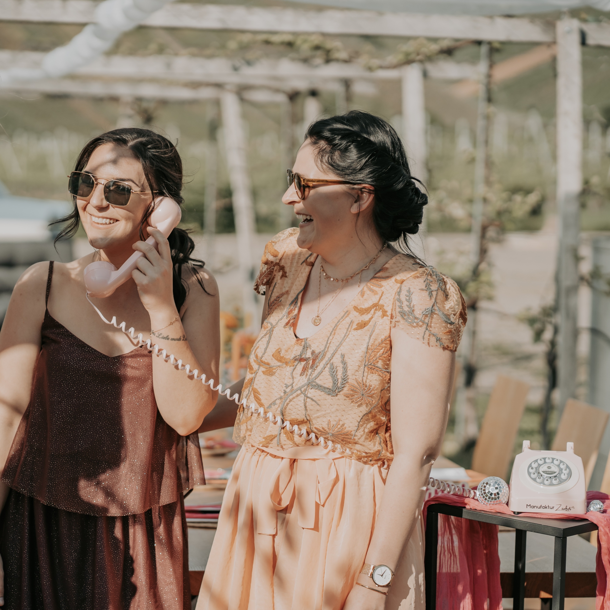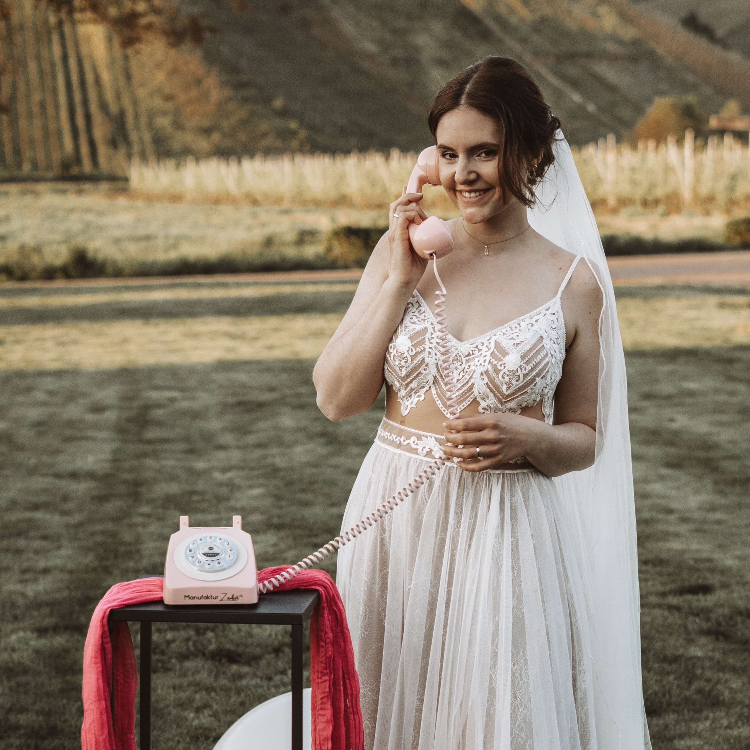 A: Das Vintage-Telefon wird mit einem Aufsteller mit Anleitung für eure Gäste sowie einem Rücksendeschein von DHL geliefert