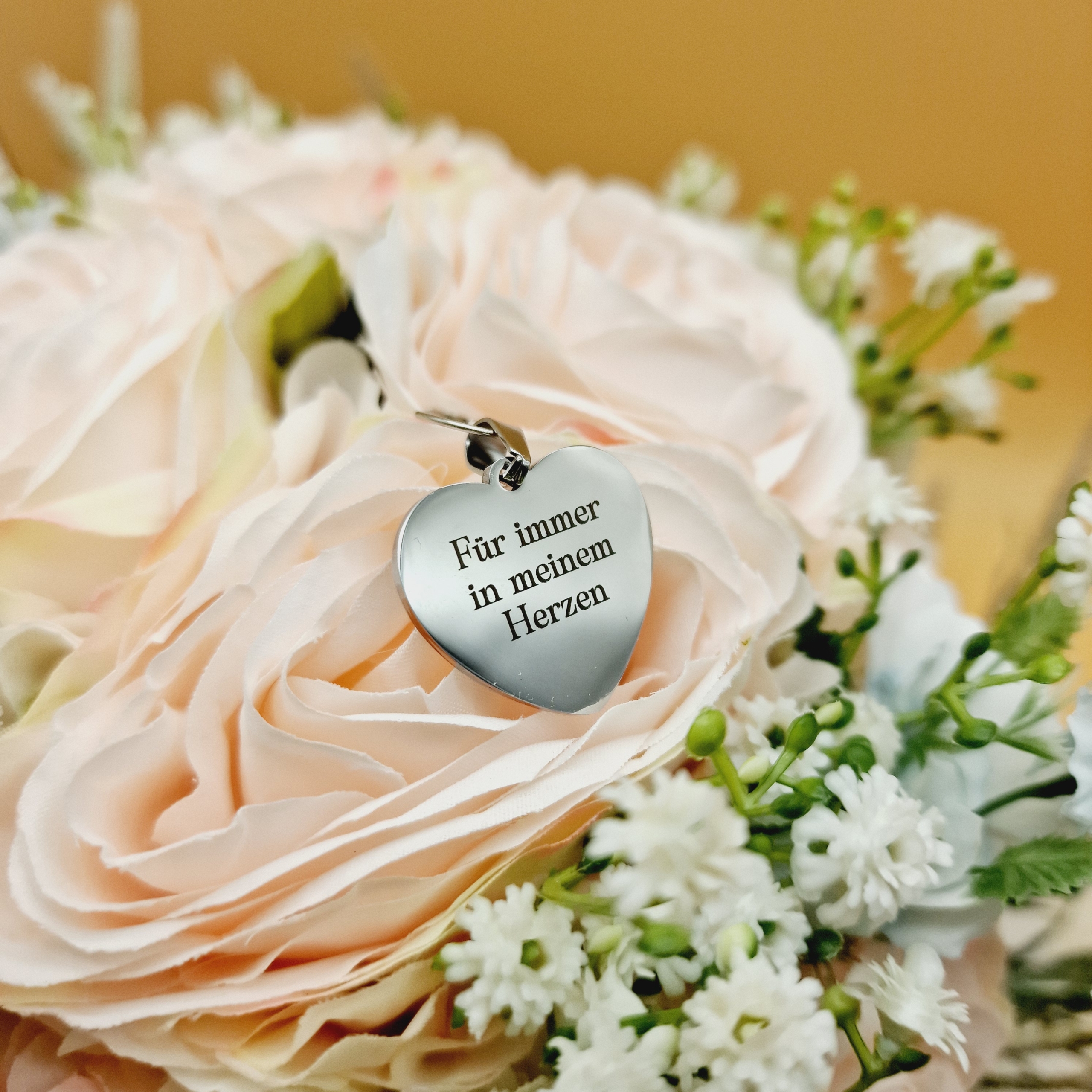 Brautstraußanhänger: Wunschgravur, 25 mm oder 35 mm, ein- oder zweiseitig gravierbar