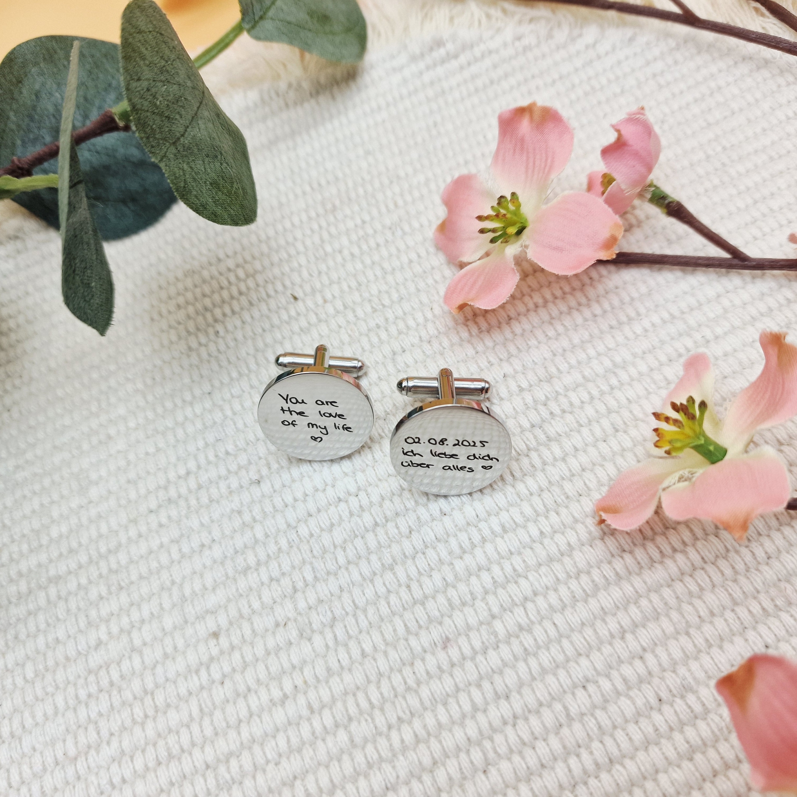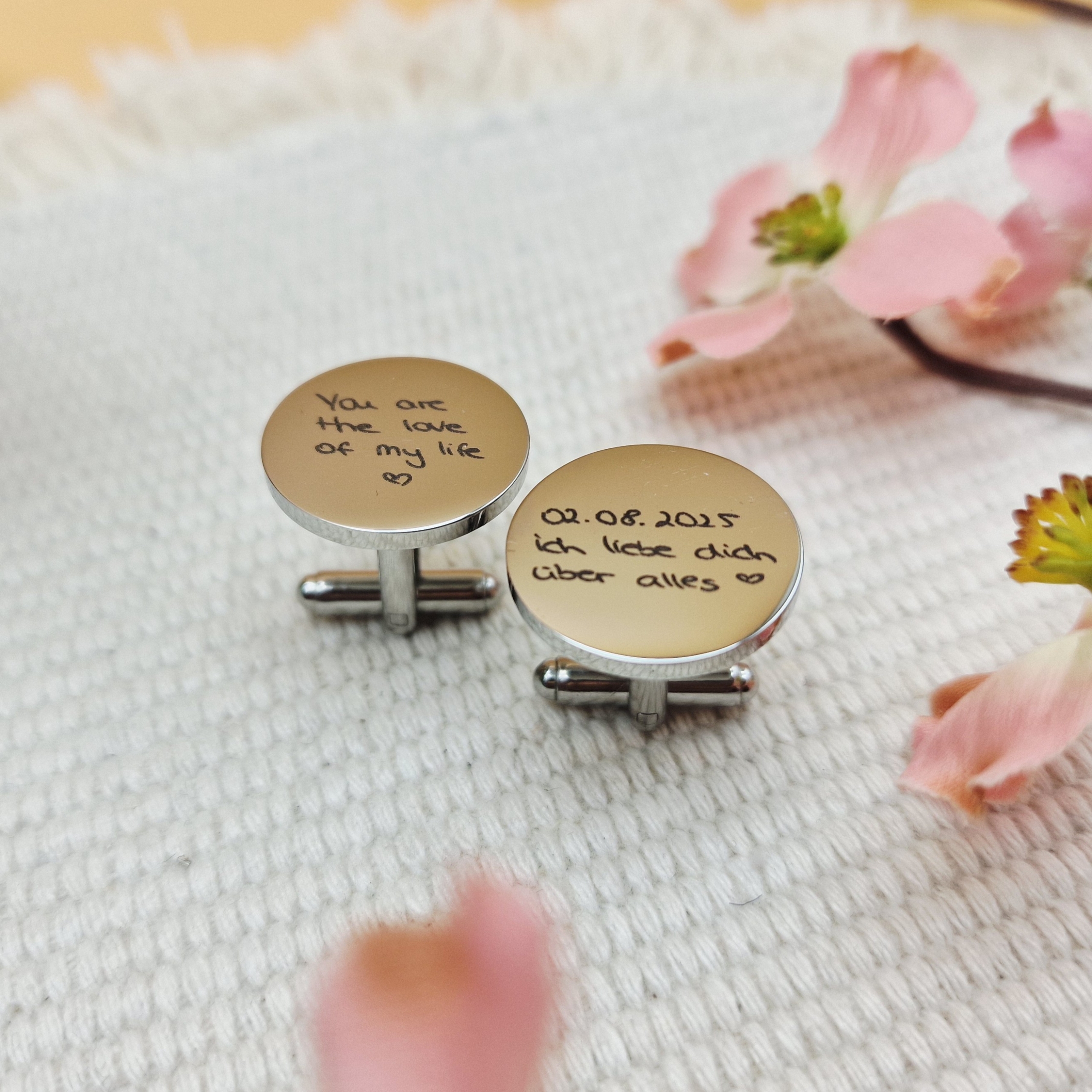 Perfekt als Hochzeitsgeschenk, Jahrestags-Überraschung oder als kleines Zeichen deiner Liebe – die Manschettenknöpfe mit deiner Handschrift werden garantiert zum Lieblingsstück am Hemd.