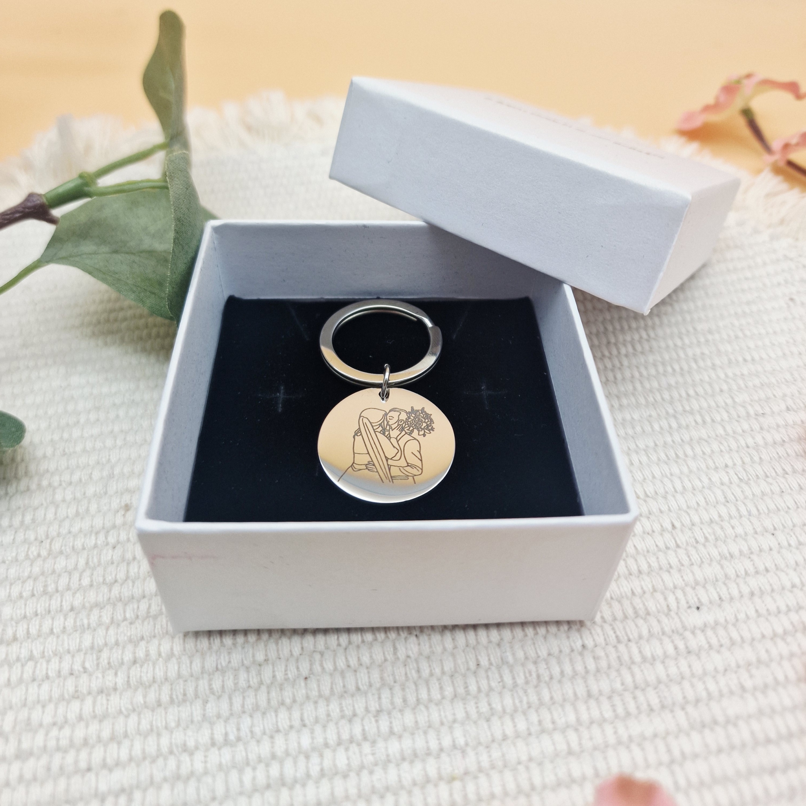 Besondere Erinnerungen verdienen es, immer bei dir zu sein. Mit unserem Schlüsselanhänger Rund | Lineart hast du deine Liebsten täglich griffbereit – stilvoll, individuell und voller Bedeutung. Ob als Geschenk zum Geburtstag, zu Weihnachten, zum Hochzeitstag oder einfach für dich selbst: Dieser Anhänger ist die perfekte Wahl für alle, die etwas Einzigartiges suchen.