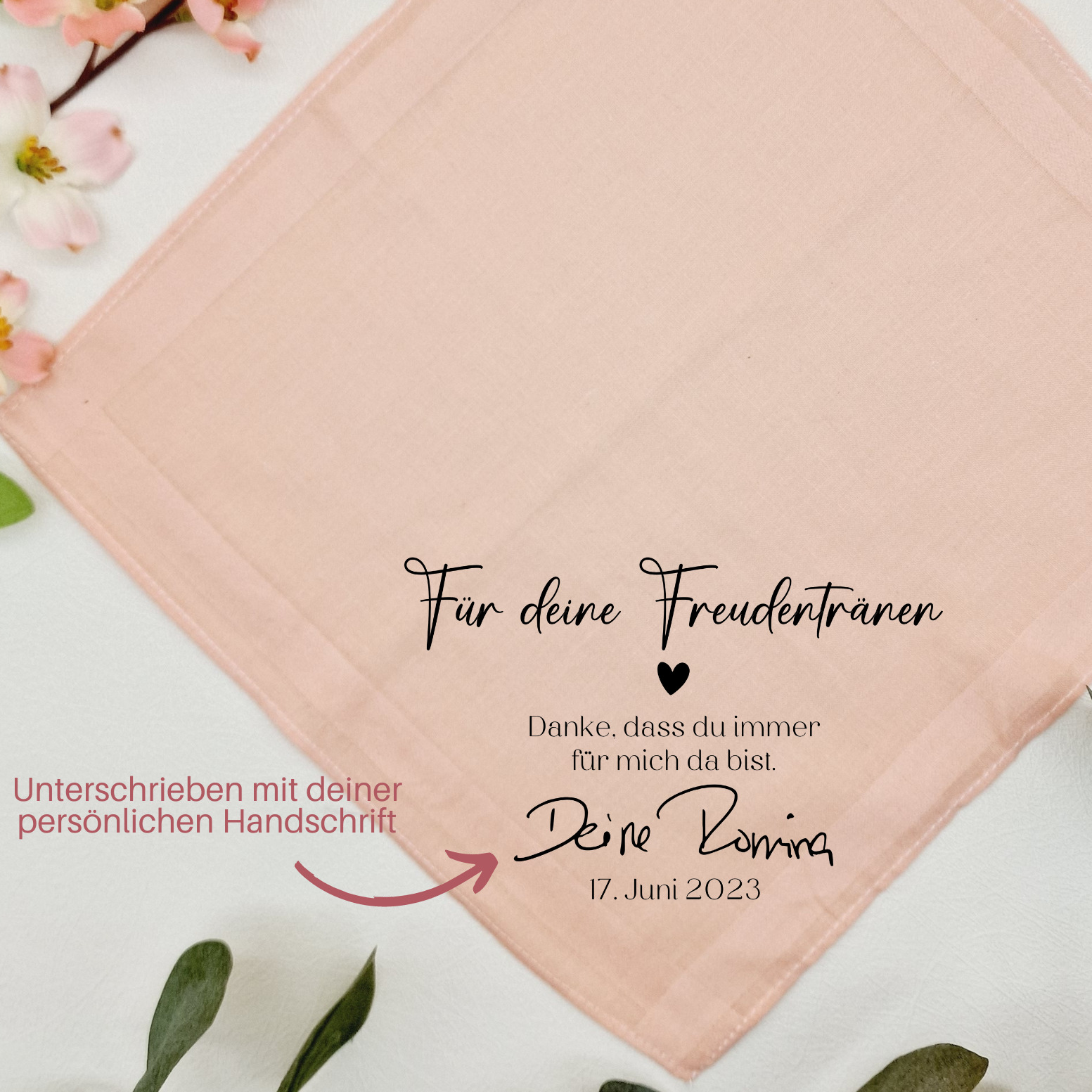 Stofftaschentuch mit eigener Unterschrift | Für die Freudentränen